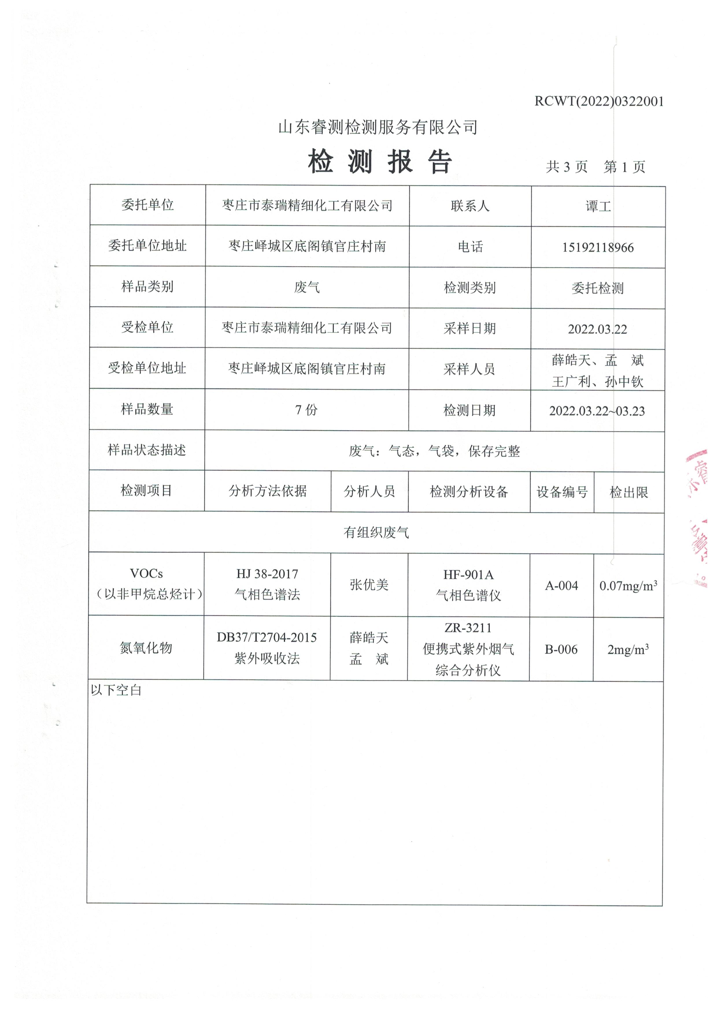 2022年3月份自行檢測報告