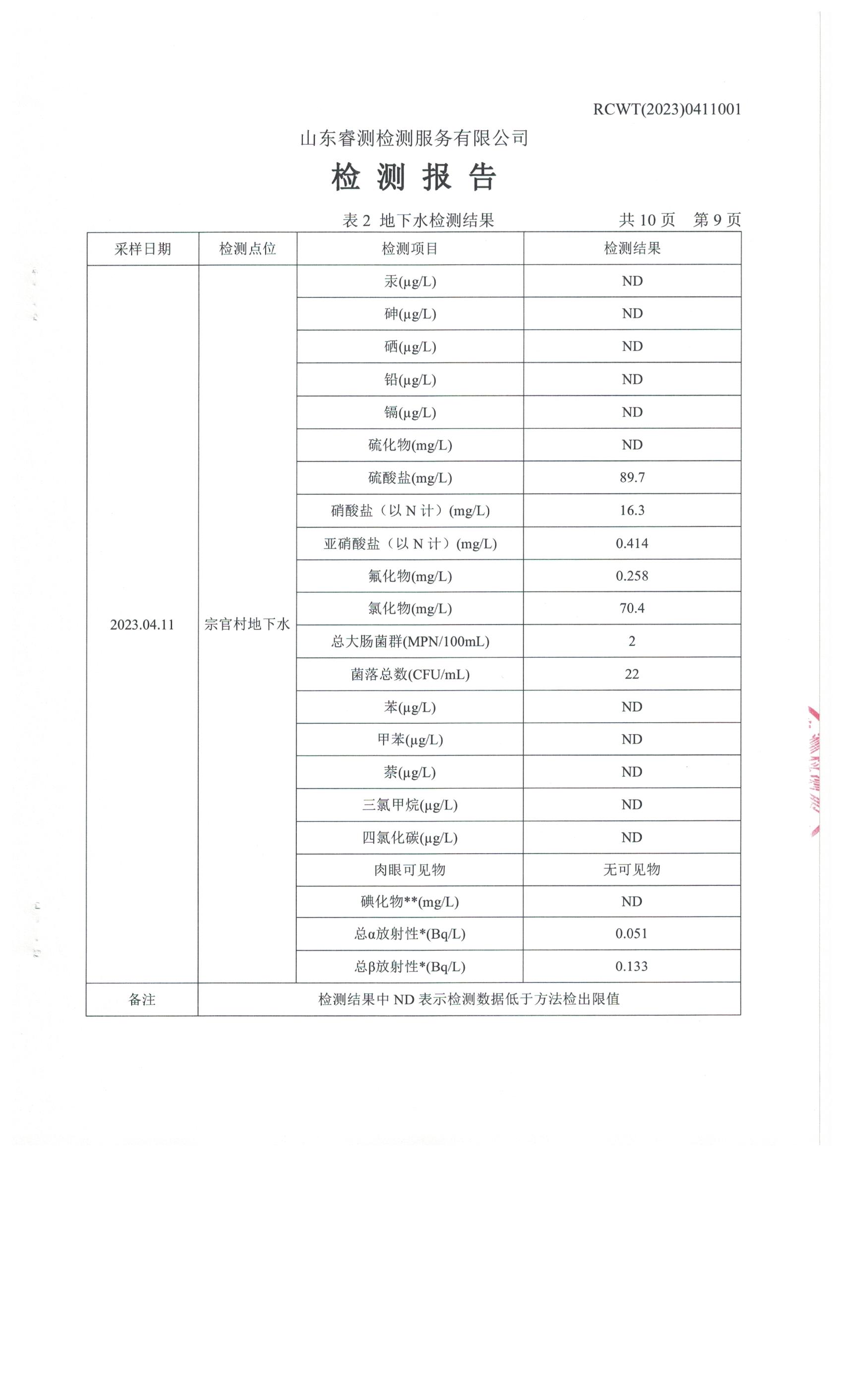 2023年第2季度(4月份)檢測報(bào)告
