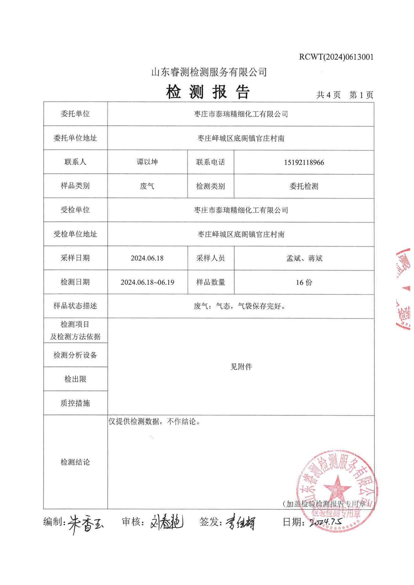 2024.6環(huán)境檢測(cè)報(bào)告泰瑞化工報(bào)告